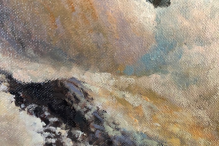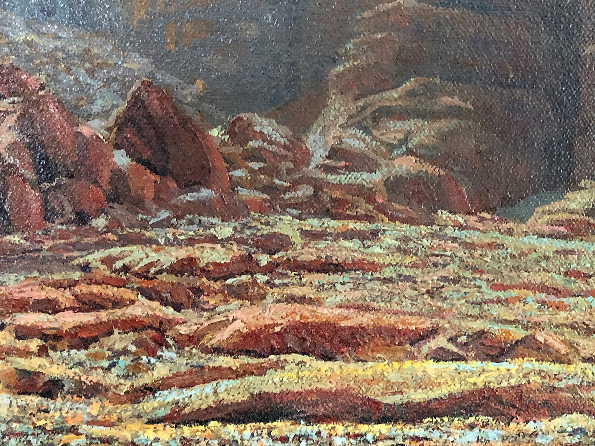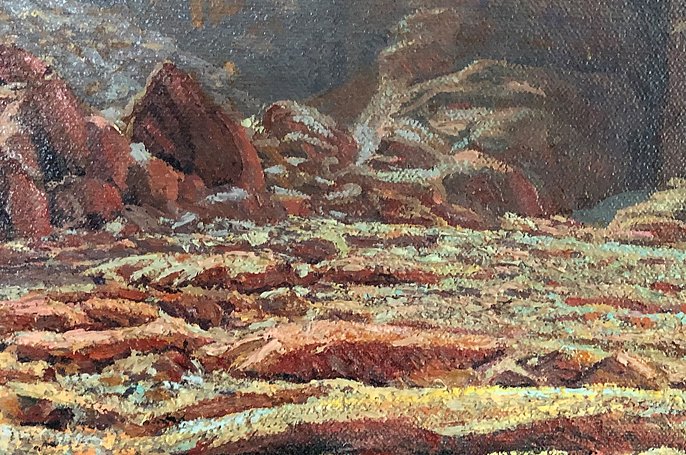 Why Chaos? detail of laminar flow over rocks breaking into foam.